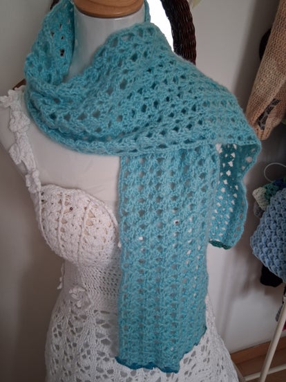 Châle, chèche, chauffe-épaule bleu, au crochet , en mohair ,acrylique