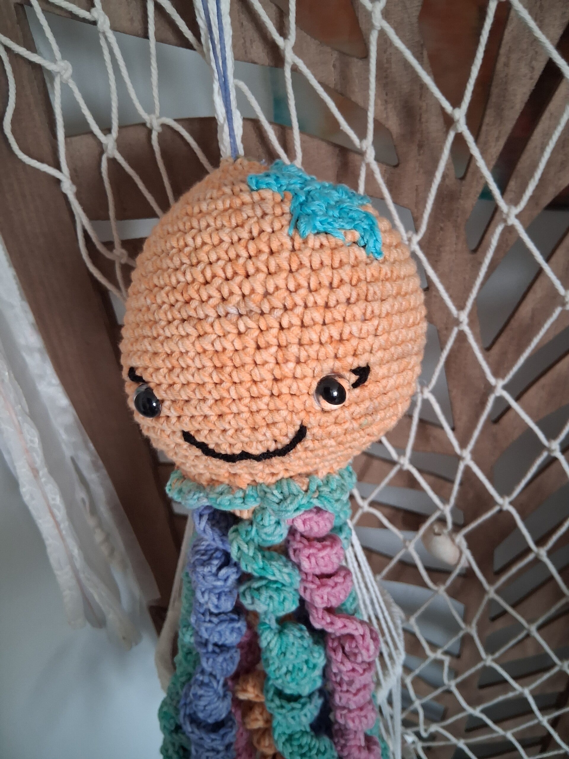 Sa tete mesure environ 33cm de diamètre et environ 50cm de hauteur Ses tentacules mesurent environ 42cm (étirés)