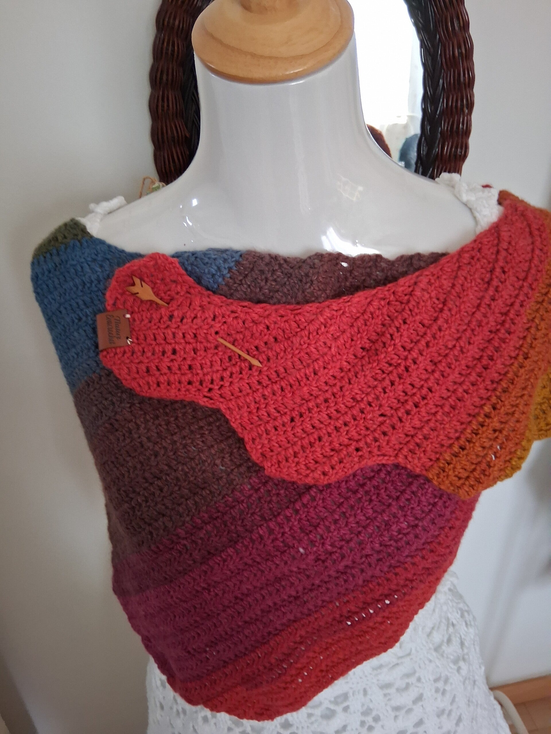 grande écharpe queue de dragon , réalisé avec une laine 100% acrylique.Multicolore
